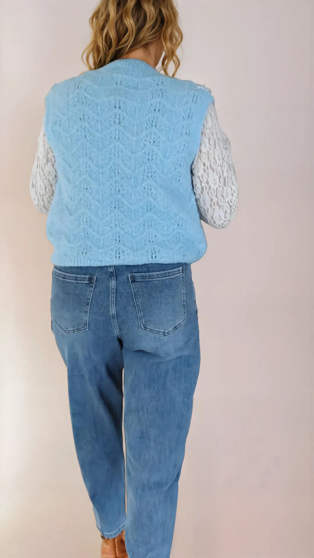 Babyblauwe wolmix spencer – fris, zacht & modern