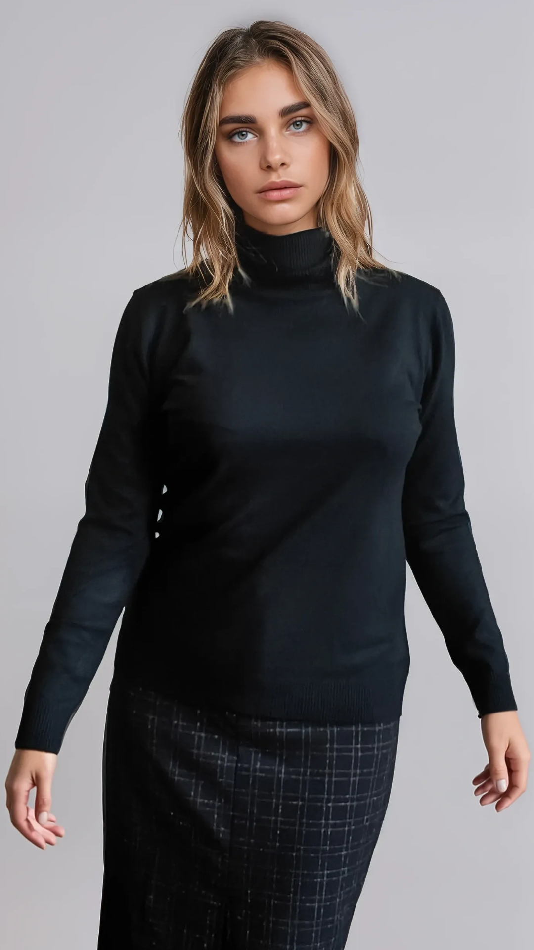 De Zwarte Coltrui in Fijne Tricot is een onmisbare basic in elke garderobe. Gemaakt van een zachte, soepele mix van viscose, polyamide en elastaan, waardoor hij heerlijk aanvoelt op de huid en zijn vorm behoudt.
