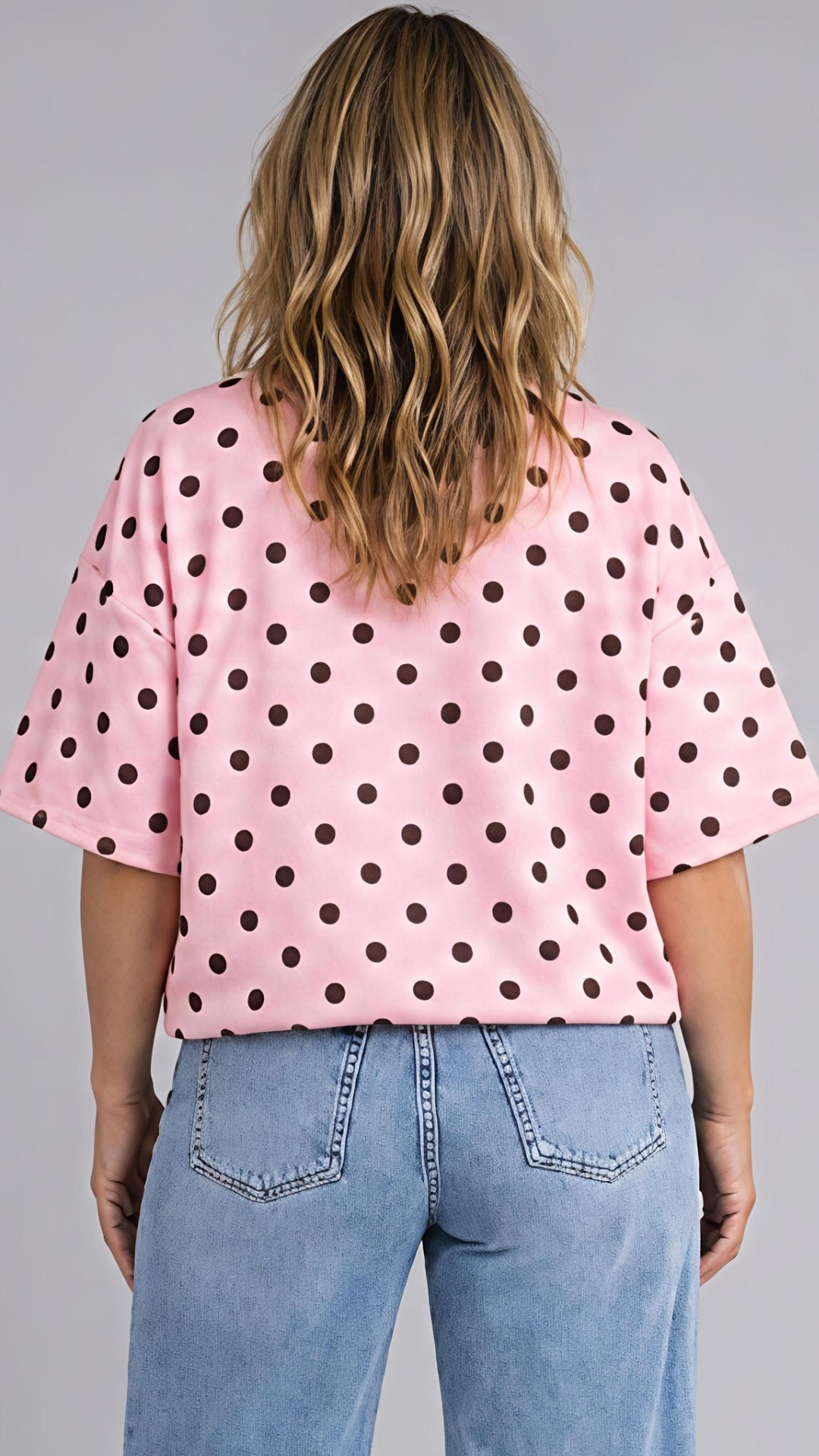 Dit roze polkadot (choladebruin) truitje is zo'n makkelijk stuk dat meteen goed zit. De zachte jerseykwaliteit voelt comfortabel aan en dankzij de elastische boord onderaan valt het truitje vanzelf mooi blousend op je broek. Instoppen is dus niet nodig: aantrekken, laten vallen en klaar.
